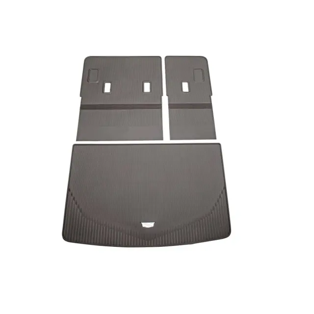 - Description: The Cadillac Accessories Integrated Cargo Liner covers the cargo area floor and the back of the rear seats to help provide protection from scratches and stains when carrying items of various sizes. Sometimes called custom floor mats or weather mats, this cargo liner covers previous wear and helps protect against future wear caused by everyday use. It articulates with the rear seatbacks, conveniently allowing for use with seatbacks in the up or down position. Protect your cargo area and even the back of the rear passenger seats with the Custom Molded Integrated Cargo Liner. The liner covers the entire cargo area floor along with the backs of the rear seats, providing that extra needed protection to handle any haul and any mess..